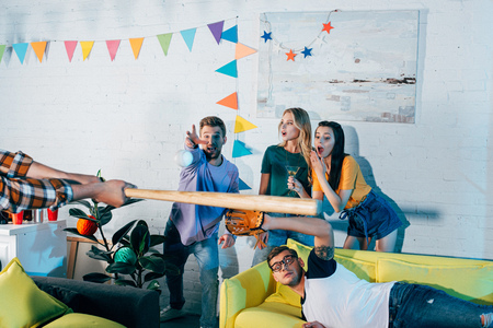 cropped shot of young friends playing baseball at home party