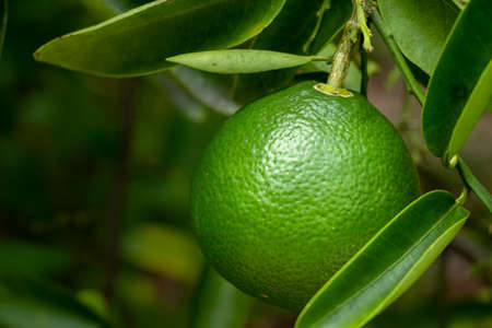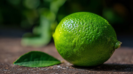 Fresh Green Lime on Natural Ground with Blurred Leafy Background