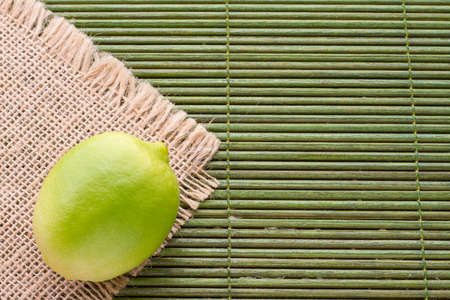 lemon on sackcloth, top view