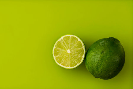 Ripe lime and slice on two tone background