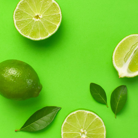 Healthy green background with lime slices