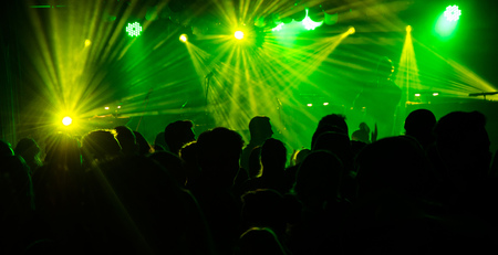 People at a concert in the light of spotlights. rock concert. Disco.