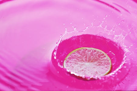 Fresh lemon falling in juice with lot of huge splashes