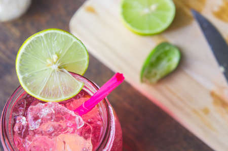 Home made cocktail on wooden background