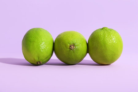 Fresh ripe limes on lilac background