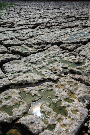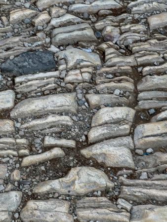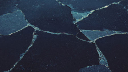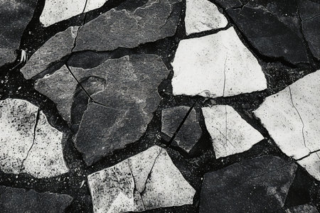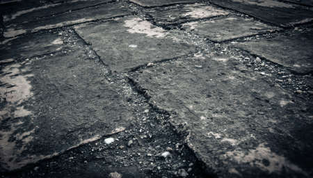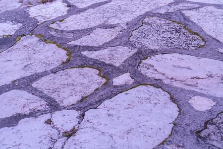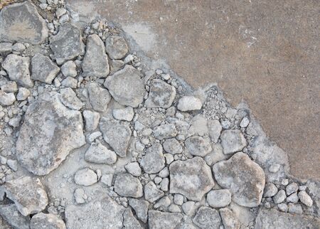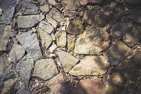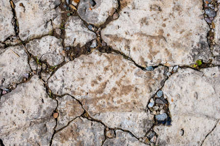 A close-up shot of the road with fragmented stones,where the cracks and crazed lines have occurred, shows the surface details visible. It is beautiful and suitable for making the background.