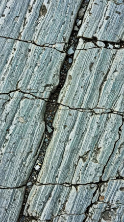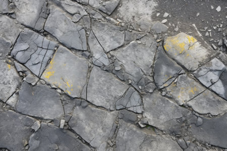 a close-up of small fragmented rocks on an earthquake fault line, created with generative ai