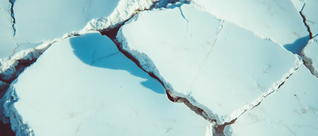 Cracked earth, showcasing a desiccation issue. Contrast of shadows and textures dry soil.