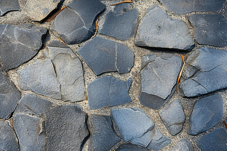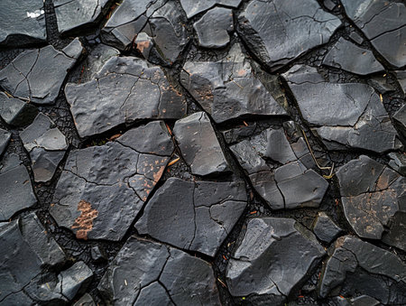 Discover the rugged beauty of a dark stone pathway, its cracked surface telling tales of time. Subtle grit adds texture, perfect for earthy, urban, or historical backdrops.