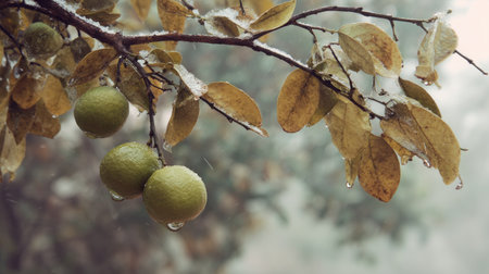The Sweet lime in winter, chilling air envelops, a few lingering leaves tremble, still atmosphere