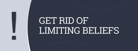 Get rid of limiting beliefs. A blue banner illustration with white text.