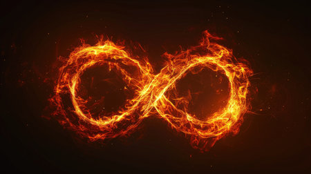 Infinity fire sign on black background symbolizing perpetual warmth and passion