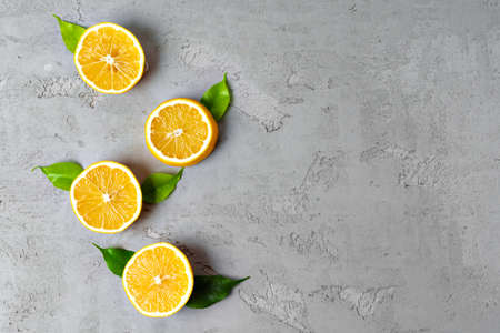 Slices of sour lemon on a gray background