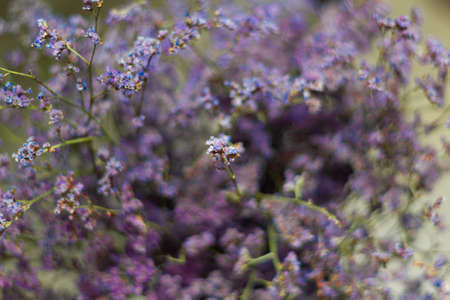 Close-up of tender small Limonium flowers of purple and light blue colors growing in bunch
