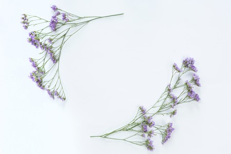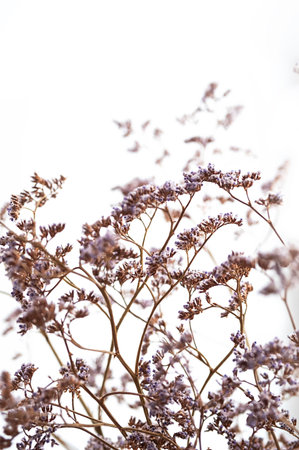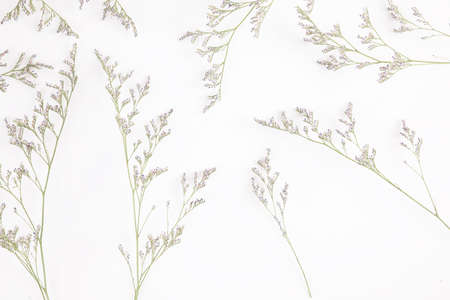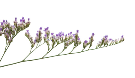 Kermek on white. The statice plant for bouquets and dried flowers. Background with copy space.