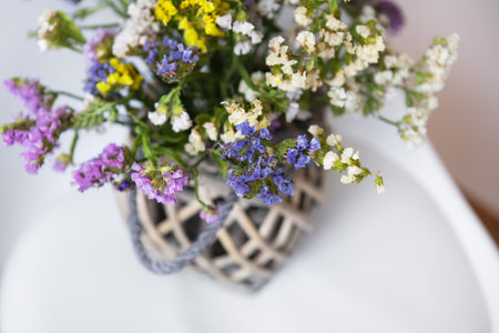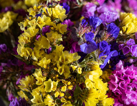 Bouquet colorful flowers Limonium or Statice (sea-lavender, caspia or marsh-rosemary)