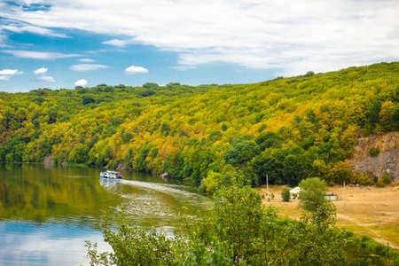 Beautiful river landscape. Dniester river in Bakota Ukraine in nice day