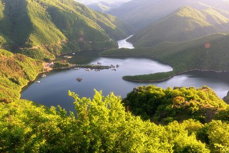 Amazing Spring landscape of Meander of Vacha Reservoir, Rhodopes Mountain, Bulgaria