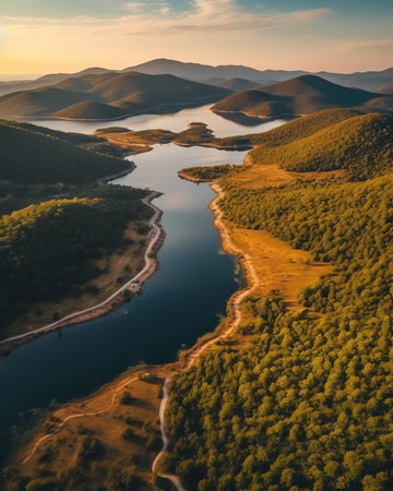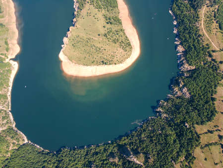 Amazing Aerial view of Arda River meander and Kardzhali Reservoir, Bulgaria