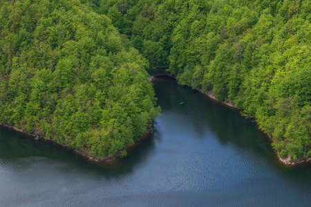Piatra lui Lucaci hiking trail view over Tarnita Lake. Cluj, Romania