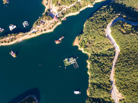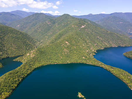 Aerial view of Tsankov kamak Reservoir, Smolyan Region, Bulgaria