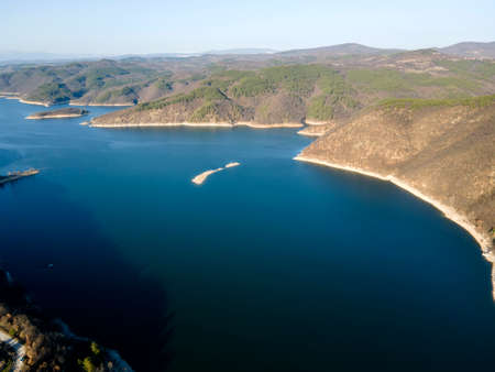 Aerial view of Vacha (Antonivanovtsi) Reservoir, Rhodope Mountains, Plovdiv Region, Bulgaria