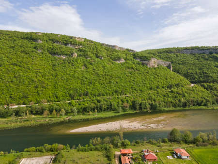 Aerial view of Arda River, passing through the Eastern Rhodopes near the village of Pchelari, Haskovo Region, Bulgaria