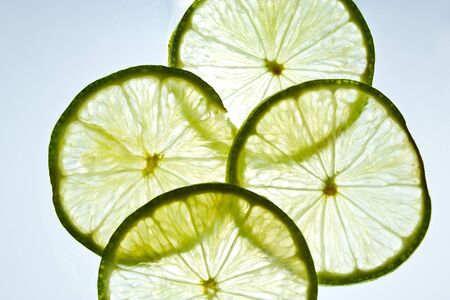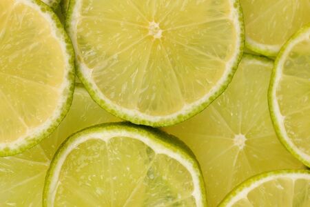 Fresh lime slices with water drops. Close-up. Background.