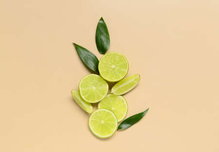 Slices of fresh limes on beige background
