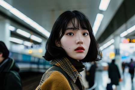 Portrait of a young Asian woman in a city street