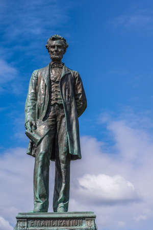 Edinburgh, Scotland, UK - June 13, 2012: Just the Abraham Lincoln bronze statue on Old Calton Cemetery isolated against blue cloudy sky.
