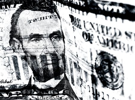Macro closeup Abraham Lincoln on five dollar bill