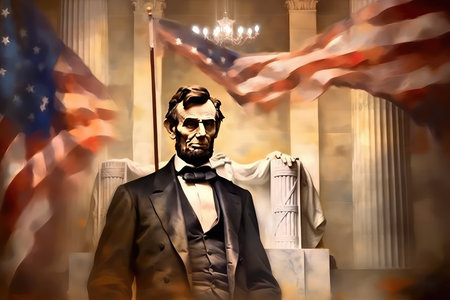 Abraham Lincoln portrait. President of United States of America. Ai Generative illustration