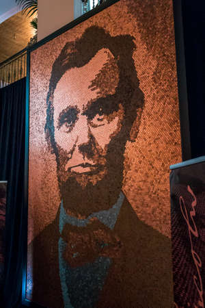 Portrait of Abraham Licoln made from pennies at Art Prize 9 in Grand Rapids Michigan