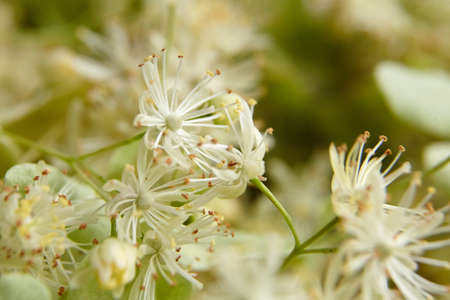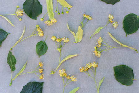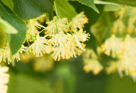 Flowers of blossoming linden or lime tree. Medicinal herb for natural alternative medicine.