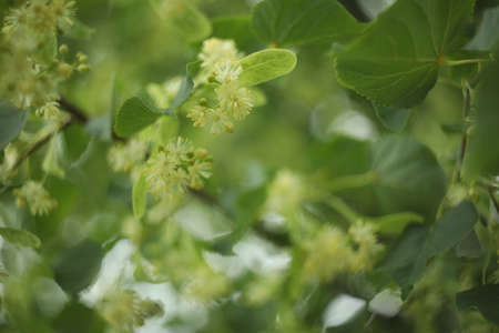 flowers blossoming tree linden wood, used for the preparation of healing tea, natural background, spring