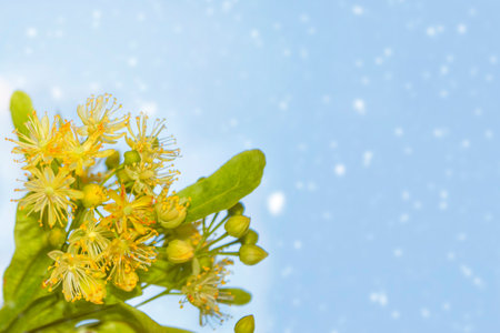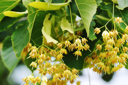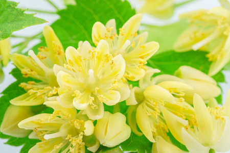 Linden blossom of Tilia cordata tree (small-leaved lime, littleleaf linden flowers or small-leaved linden bloom)