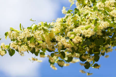 flowers blossoming tree linden wood, used for the preparation of healing tea, natural background, spring