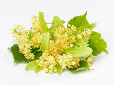 Linden flowers with leaves isolated on a white background. Limetree.