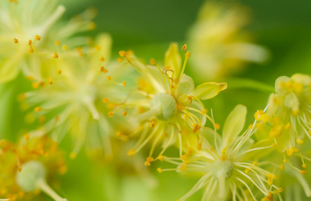 Yellow flowers of linden tree, fragrant medicine herbal and healthcare tea ingredient