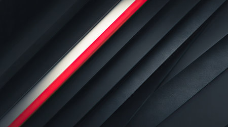 An abstract composition features dark gray diagonal lines with a bright red and white stripe. The lines create depth and shadow, highlighting the contrasting colors. The image suggests a modern or architectural theme with clean lines. It could be used for backgrounds, graphic design, and other commercial applications.