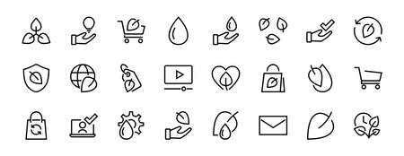 Ecology Icon Set, Vector lines, contains icons such as photosynthesis, Enviroment protection, Eco-friendly package, growth time, Editable stroke, perfect 48x48 pixels, White background.