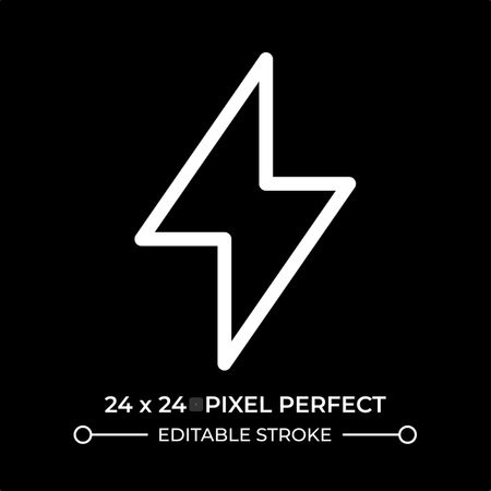 Thunderbolt symbol line ui icon isolated on black. Electric tension danger marking. Power generation technology. Lightning sign. Vector outline symbol. User interface element dark mode, pixel perfect