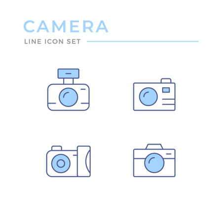 Set color line outline icons of camera
