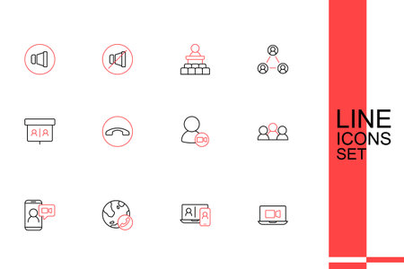 Set line Video chat conference Meeting Telephone handset and icon. Vector.