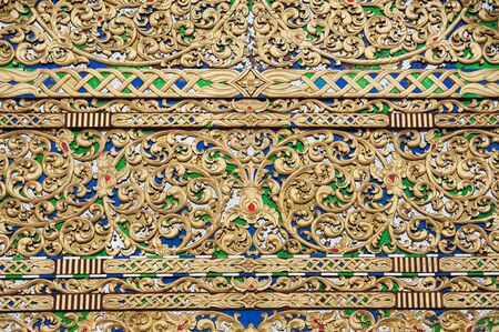 Close up Traditional Thai style pattern decorative temple wall in Thailand