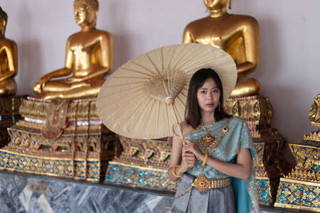 Beautiful woman in traditional dress costume,Asian woman wearing typical