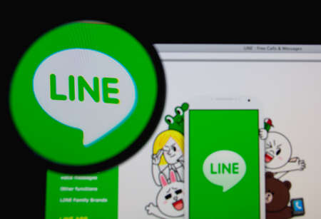 LISBON - JANUARY 19, 2014: Photo of Line homepage on a monitor screen through a magnifying glass.