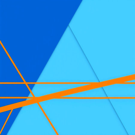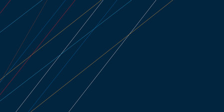 Geometric pattern where lines and shapes intersect with each other to form new patterns on dark blue gradient with copy space