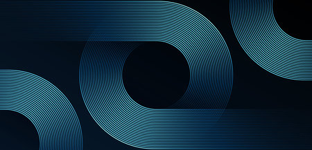 Dark blue abstract background with glowing geometric lines. Modern shiny blue rounded lines pattern. Futuristic technology concept. Suit for poster, banner, brochure, cover, website. Vector illustration